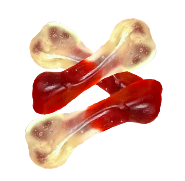 Xarope de glicose, açúcar, água, gelatina, umectante: E420, acidulantes: E330,E270, , regulador de acidez: E325, aromas, concentrados preparações de extratos de frutas e vegetais (cenoura, groselha preto), agentes de revestimento: E901, E903, corantes: ver selo.