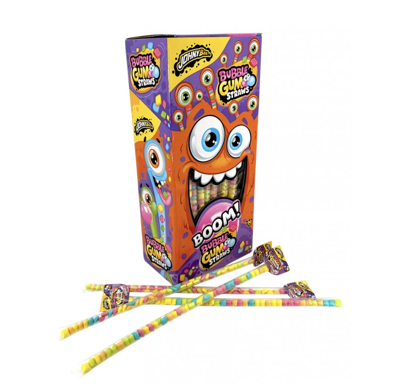 Dextrose, Açucar, Agua, Regulador de acidez: (ácido citrico, ácido málico), Atiaglomerante: (E470b), sabores, corantes: E162, E133; E100.