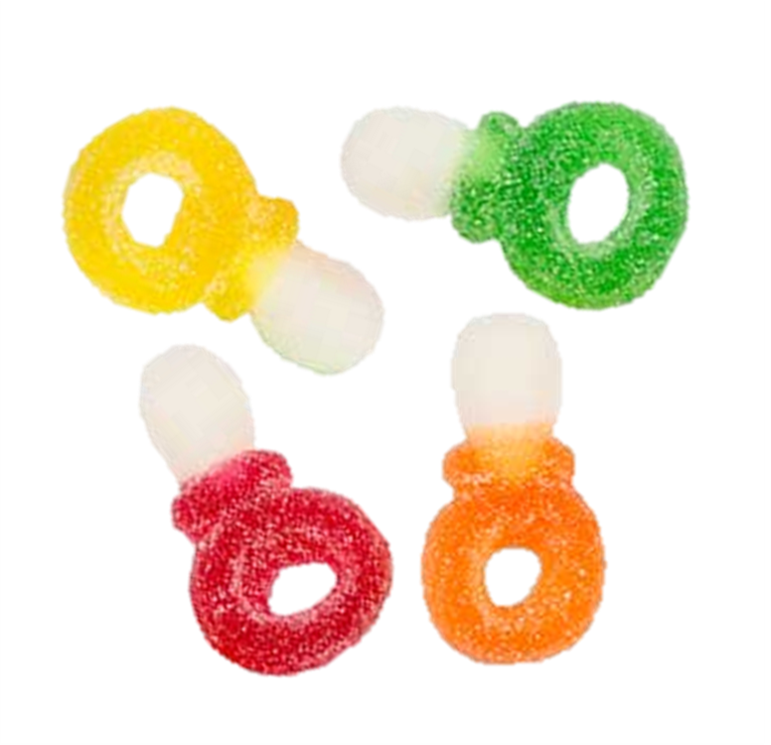 Açúcar, xarope de glucose, água, gelatina; acidificante: E330; aromas; corantes: E102, E129, E133.