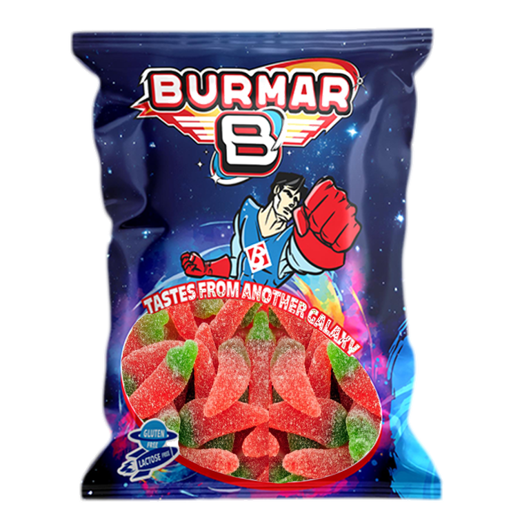 Xarope de glucose; açúcar; água; gelatina; acidificante: E330; aromatizante; corantes: E102, E129, E133.