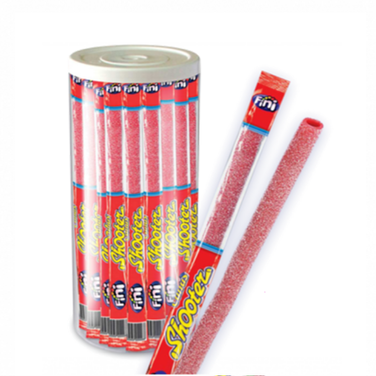 Deliciosas canas ácidas com sabor a morango, embaladas individualmente.