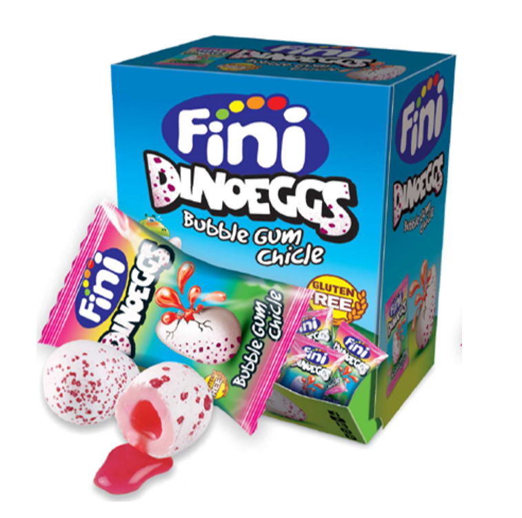 Fini Booom chicle recheadas em forma de ovos dinossauro.