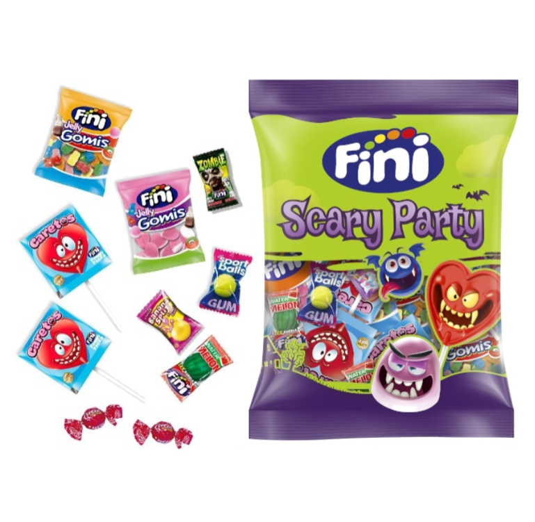 INGREDIENTES: GOMAS: Xarope de Glucose, Açúcar, Água, Dextrose, Amido, Gelificante: Gelatina, Óleo Vegetal, Aromatizantes e Corantes Artificiais. Não Contém Glúten. CHICLE: Açúcar, Xarope de Glucose, Lecitina de Soja, Aromas, Acidulantes, Humectante, Corretor de Acidez, Agentes de Recobrimento (E901, E903). Colorantes: E120, E133, E160c, E163. Contém derivados de Soja CHUPAS: Xarope de Glucose, Açúcar, Água, Aromatizantes, Corantes Artificiais, Acidificantes, Dextrose, Glicerina, Xarope de Sorbitol. Não contém glúten. Informações Nutricionais Valores nutricionais médios por 100g: Energia: 1420.00 kJ / 334.00 kcal Lípidos: 0.00 g Dos quais ácidos gordos saturados: 0.00 g Hidratos de carbono: 80.00 g Dos quais açúcares: 69.00 g Proteínas: 3,50 g Sal : 0.10 g Conservação Conservar em local fresco e seco. Nome do Produtor Fini Golosinas Espanha, S.L.U. Informação Adicional Confirmar a informação no Rótulo do Artigo. Devido a possíveis alterações de embalagens e/ou rótulos deverá considerar sempre a informação que acompanha o produto que recebe. (Imagem ilustrativa)