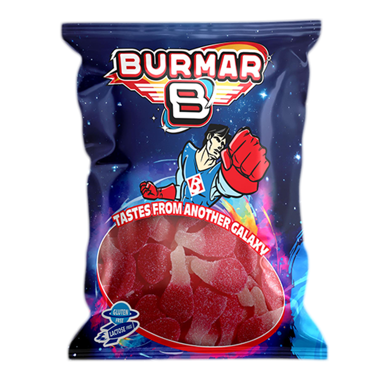 Xarope de glucose, açúcar, amido, água, gelatina bovina halal, acidificante: E330, aromatizante, corante: E122