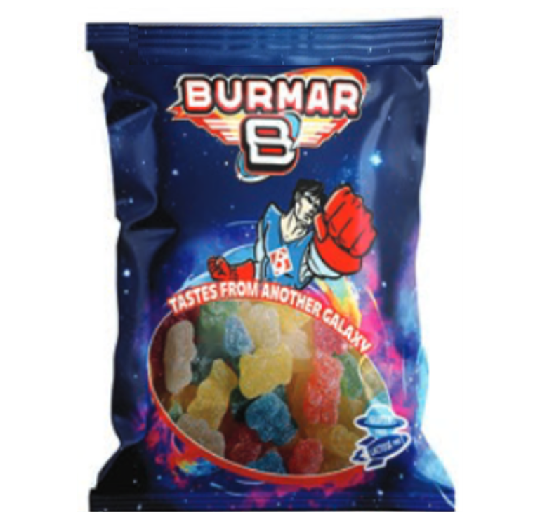 Açúcar, xarope de glucose, água, gelatina; acidificante: E330; aromas; corantes: E102, E129, E133.